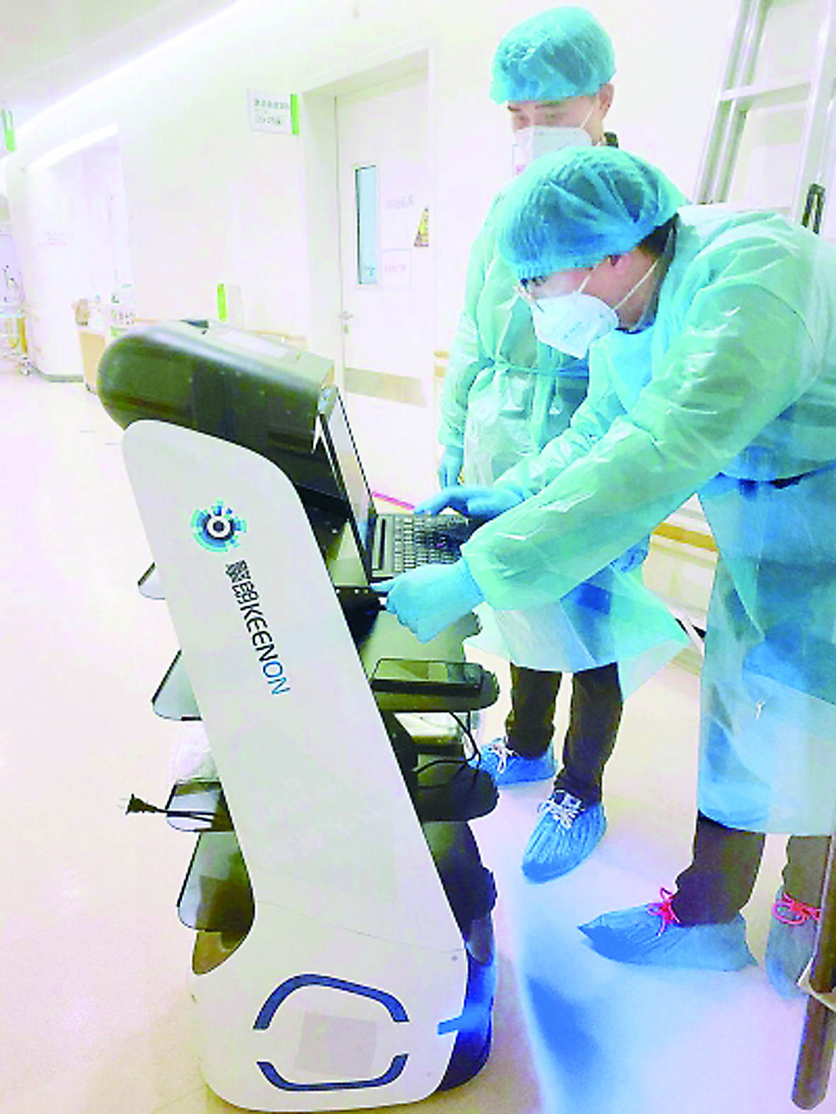 疫情期间,形态各异、憨态可掬的机器人,成为一群特殊的“逆行者”。机器人不用戴口罩、不用穿防护服,只需每天按时消毒,既节约口罩、防护服等用品,又能减少交叉感染。