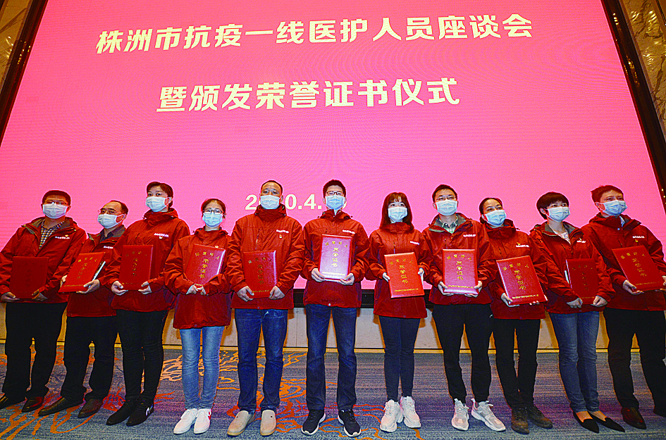 近期,省文明办授予株洲援鄂医疗队83人“湖南好人”荣誉称号,市文明办授予市定点集中隔离救治医院281人“株洲好人”荣誉称号。同时,市委新冠肺炎疫情防控工作领导小组授予364名一线医护人员及疾控人员抗击新冠荣誉证书。
