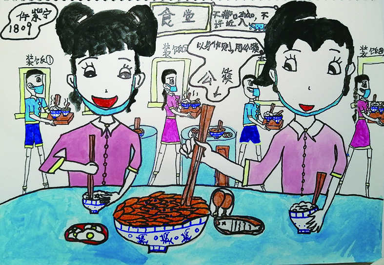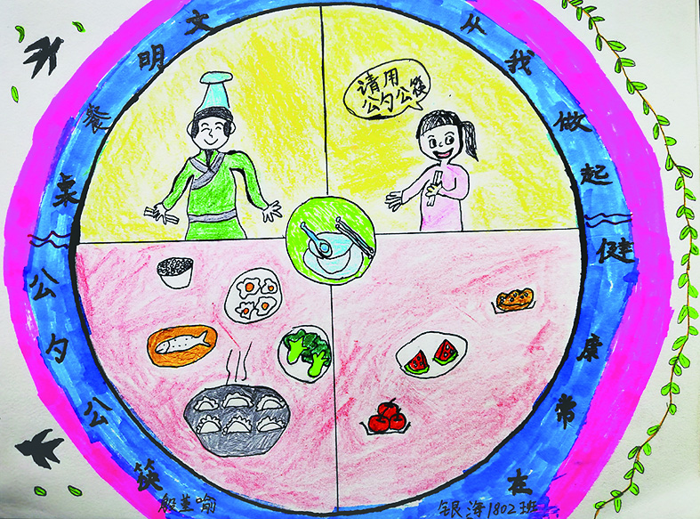▲银海小学学生设计的“文明就餐”美术作品 通讯员 供图