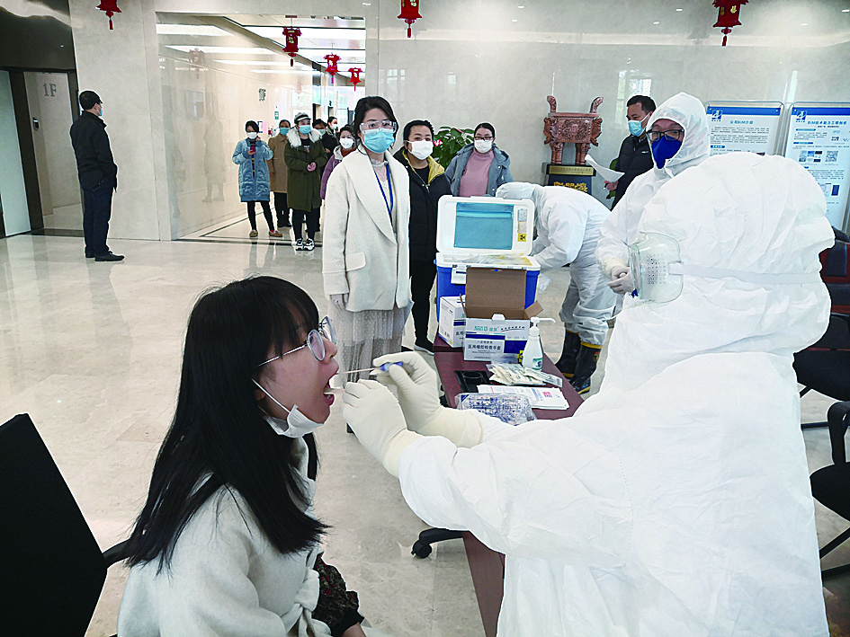 ▲医护人员在对公司员工进行核酸检测 通讯员供图