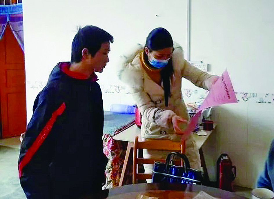 ▲刘文彦向肖静介绍培训、就业等政策信息 通讯员供图