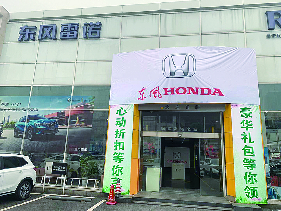 ▲我市东风雷诺4S店的门口已改为“东风本田” 记者 贺天鸿 摄