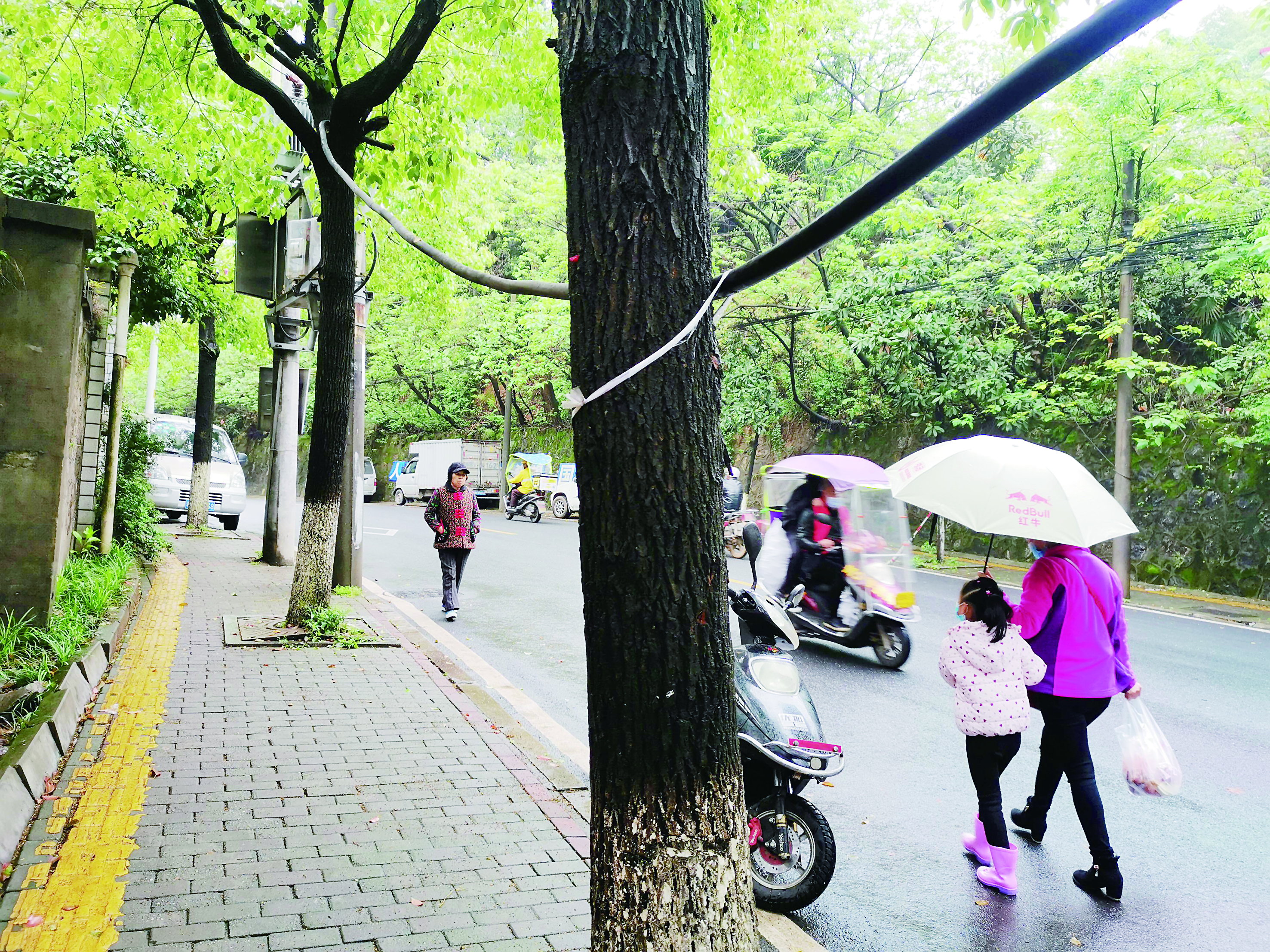 前日,记者在现场看到,有一根黑色的电缆由一处变压器引出,直接挂在人行道的大树上,部分节点仅用塑料绳固定,最低处距离地面仅为1.7米左右。附近居民介绍,该电缆已存在半年时间,大家都很担心电缆掉落或破损引发安全事故。