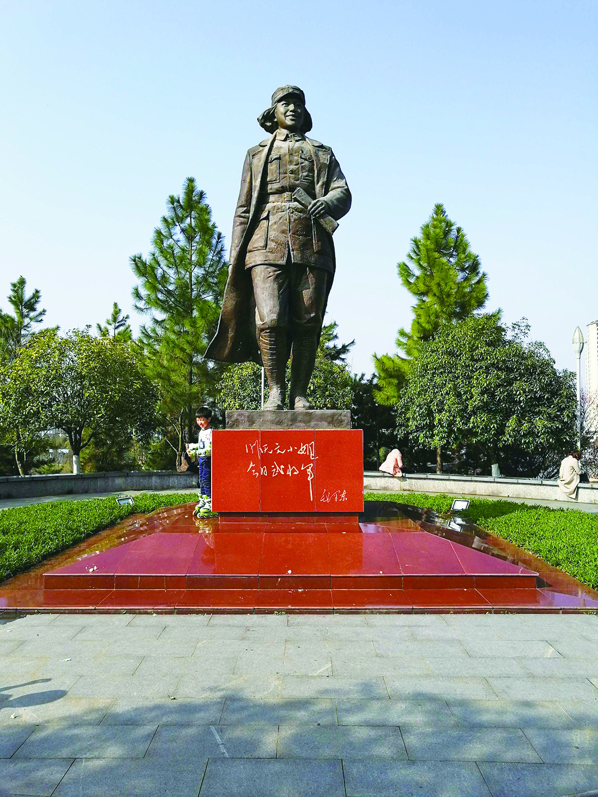 走近丁玲 □ 马立明 也是去年的这个时节,我随我的一群书友,第一次到我们湖南的最北端——澧县和临澧县。在那里,我们不但参观了“城头山新石器时代遗址”,还去了近代著名女作家丁玲的故乡,参观了“丁玲纪念馆”,瞻仰了丁玲一身戎装的雕像以及她的墓,还获得该馆馈赠的“丁玲笔记本”一个。 虽说回来有些时日了,但是“昨天文小姐,今日武将军”的丁玲形象不时萦绕在脑际。特别是她不平凡的一生和文学成就,足令人折服!可以说,丁玲不仅是临澧、常德的骄傲!同样也是我们湖南乃至国家的荣光! “丁玲纪念馆”坐落在临澧县城“丁玲公园”内。这是一座具有浓郁江南风格的庭院式建筑,占地4600多平方米。馆前置有围墙,墙边植有常青树、翠竹等,形成一个偌大的院落。院门上方悬挂有原文化部代部长贺敬之题写的“丁玲纪念馆”横匾。在未进馆之前,我们在公园里首先瞻仰了丁玲雕像。这是一尊极具英姿飒爽、朝气蓬发、意志坚定的女战士形象,其雕塑制作艺术水平,可说一流! 雕像座基上,镌刻着毛主席手书“昨天文小姐,今日武将军”十个金色字。应当说,这十个字高度概括了丁玲跌宕起伏和不平凡的一生。据载:丁玲1936年来到陕北保安,是第一个冲破险阻到达延安的文人、作家。她的到来,无疑给陕甘宁抗日根据地原本力量薄弱的文艺运动增添了力量和活力。这时的丁玲,积极投身革命、写文章、写话剧,并要求当红军、上前线,从而得到了毛泽东、周恩来等领导的赏识。也正是在这种情况下,毛主席为她创作了这首著名的《临江仙》。 壁上红旗飘落照,西风漫卷孤城。保安人物一时新。洞中开宴会,招待出牢人。 纤笔一枝谁与似?三千毛瑟精兵。阵图开向陇山东。昨天文小姐,今日武将军。 这首词,很显然是毛主席对这位女作家女战士才华的褒奖。据悉,这是毛主席在众多诗词里惟独用《临江仙》这个词牌写丁玲的,其意义,是何其的深远哟! 那日,天气晴朗,我们一行人抓紧时间逐个与丁玲雕像一一合影,以示对这位大作家的敬仰与怀念。 走进“丁玲纪念馆”,迎面大厅中央是一尊丁玲身着学生装的青年雕像。它反映了上世纪初丁玲就读桃源第二女子师范学校,和转学去长沙周南女子中学求学时的生活情景。大厅左右两侧墙上,分别嵌有现当代十位文学名家的头像浮雕,他们分别是:鲁、郭、茅,巴、老、曹,加沈从文、冰心、丁玲、艾青。厅中墙上还有一块贺敬之《致丁玲作品研讨会》上的一段讲话:“……在我看来,丁玲是继鲁迅、郭沫若、茅盾之后的无产阶级文学的又一杰出作家。” 纪念馆内,有三个大厅,主标题是《党的好女儿——丁玲生平故事展》。 该展以“飞蛾扑火”“鲁迅旗帜下的斗士”“纤笔一枝谁与似”“为了新中国文艺的繁荣”“春蚕到死丝不断”“丁玲不死”六个版块,并配以数百张巨照,加上丁玲生前用过的实物和著作、文稿、获奖证书等,把丁玲一生展现得清清楚楚、平白动人。这是我第一次近距离走近丁玲,第一次全面了解和熟知丁玲同志这位杰出的无产阶级革命文艺战士。然而,当这样一位优秀的女作家、女战士被人们忘却的时候,王蒙先生曾这样深情地说:“丁玲并非像某些人说的那样简单。在全国掀起张爱玲热的时候,我深深地为人们没有纪念和谈论丁玲而悲伤而不平……” 值得庆幸的是,常德人民没有忘记这位“中国人民的好女儿”,他们在她的家乡临澧县建成了这座纪念馆,并列为爱国主义教育基地,我以为这是对丁玲最好纪念。同时我也希望我们的国人,特别是湖南人,不忘先贤,在讲好中国故事时也讲讲丁玲。 ▲丁玲雕像 许养 摄