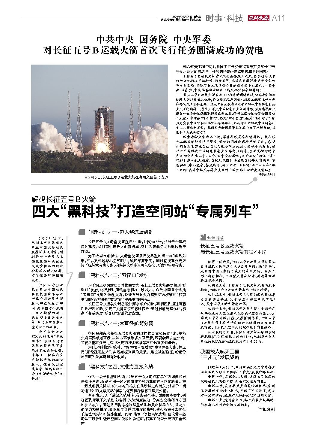 中共中央 国务院 中央军委 对长征五号B运载火箭首次飞行任务圆满成功的贺电