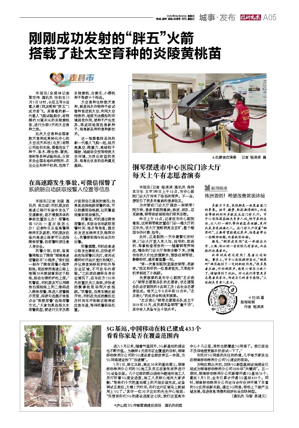 刚刚成功发射的“胖五”火箭 搭载了赴太空育种的炎陵黄桃苗