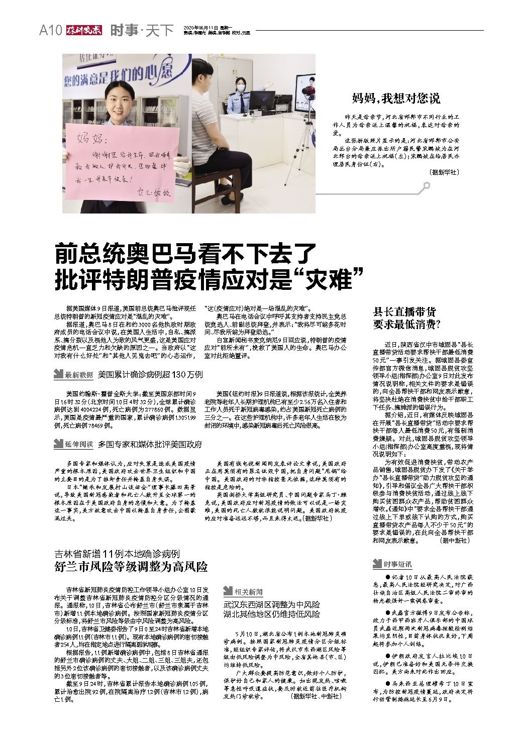前总统奥巴马看不下去了 批评特朗普疫情应对是“灾难”