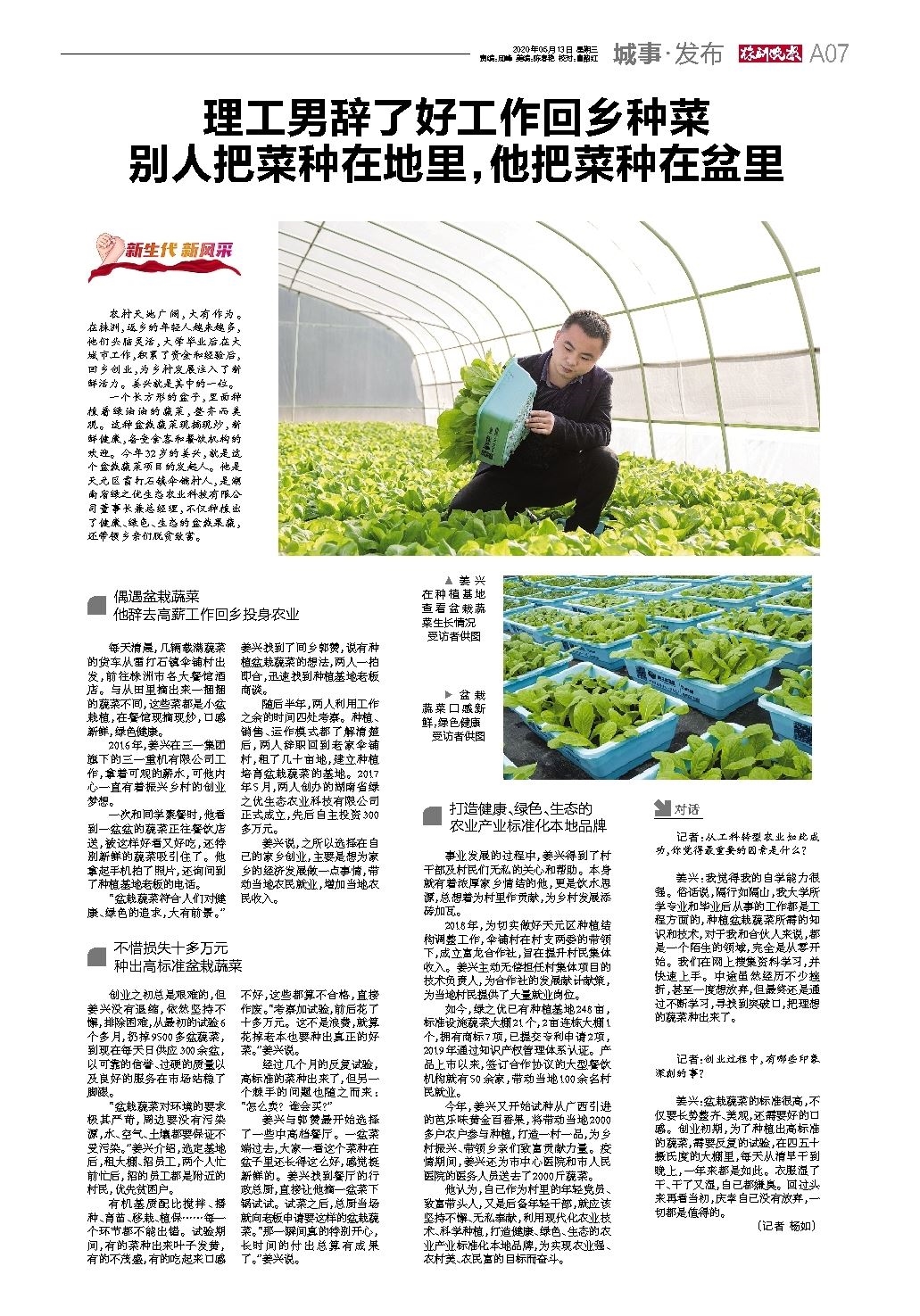 理工男辞了好工作回乡种菜 别人把菜种在地里,他把菜种在盆里