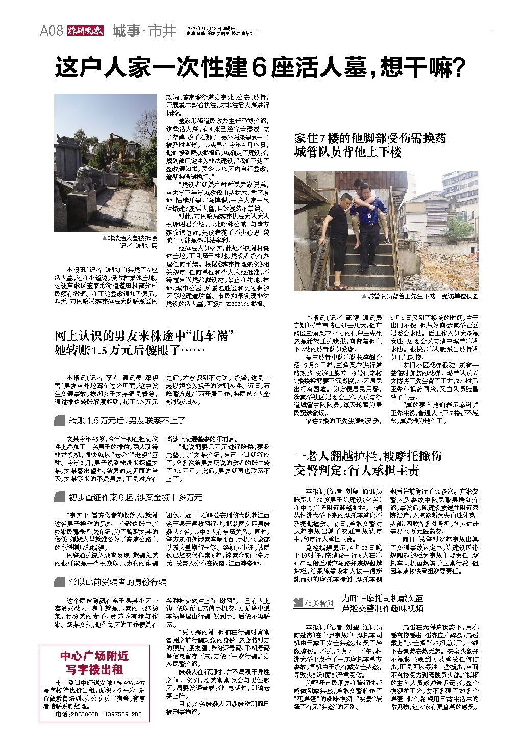 一老人翻越护栏,被摩托撞伤 交警判定:行人承担主责