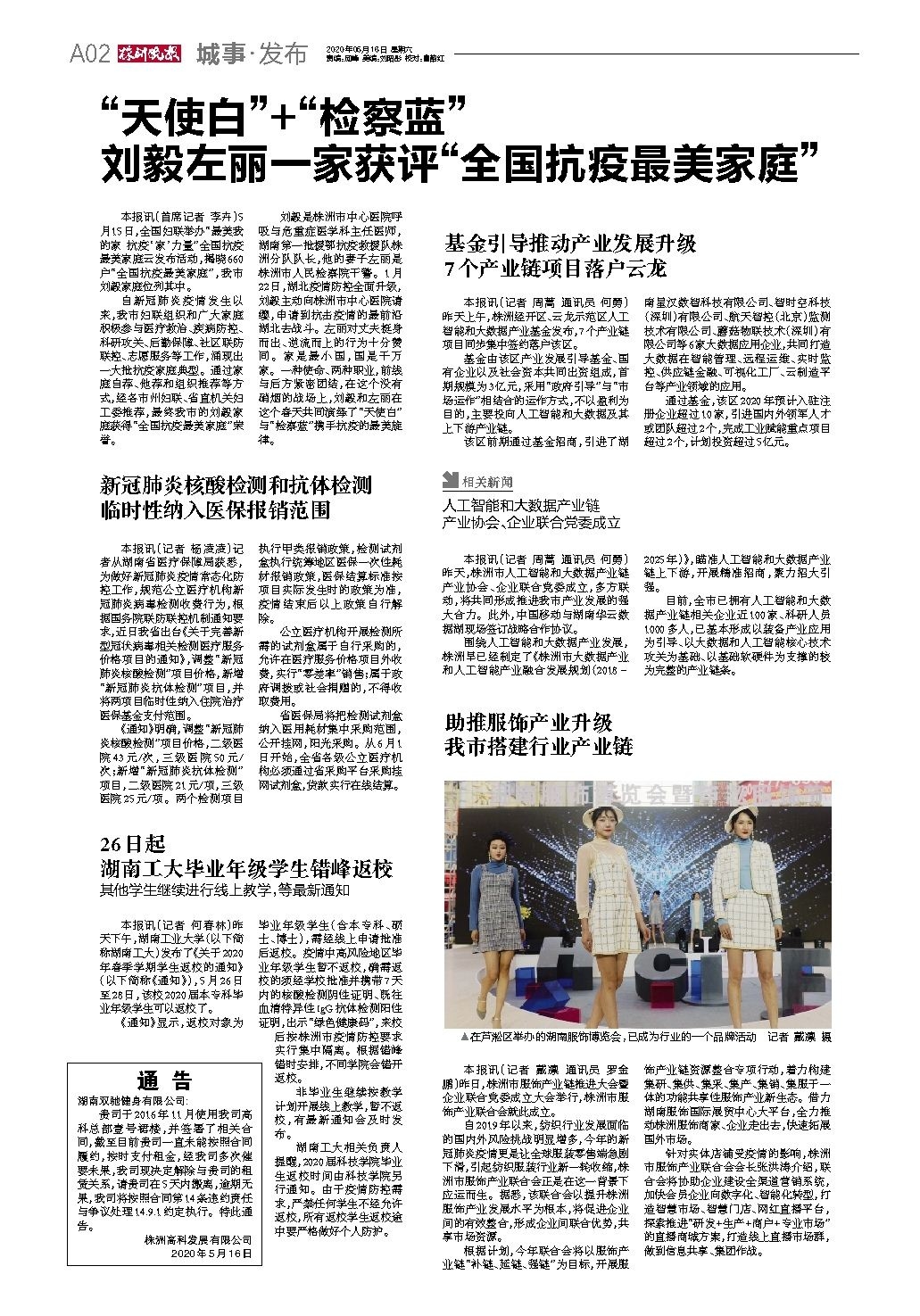 2020年05月16日《株洲晚报》