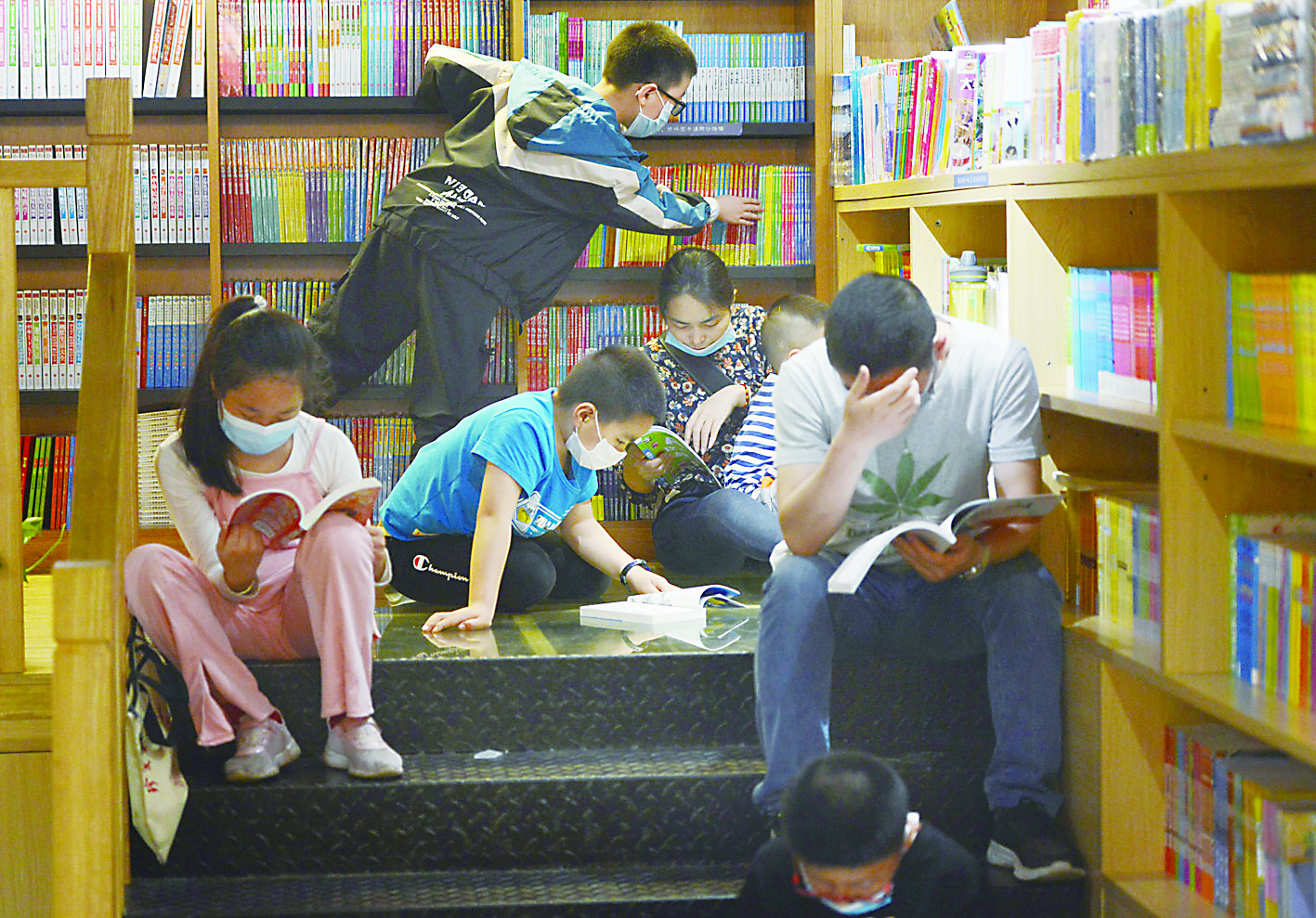 脚步不能丈量的地方,文字可以。一些市民带着孩子到书店购书、阅读,或者参加读书活动,在书香中乐享假日时光。