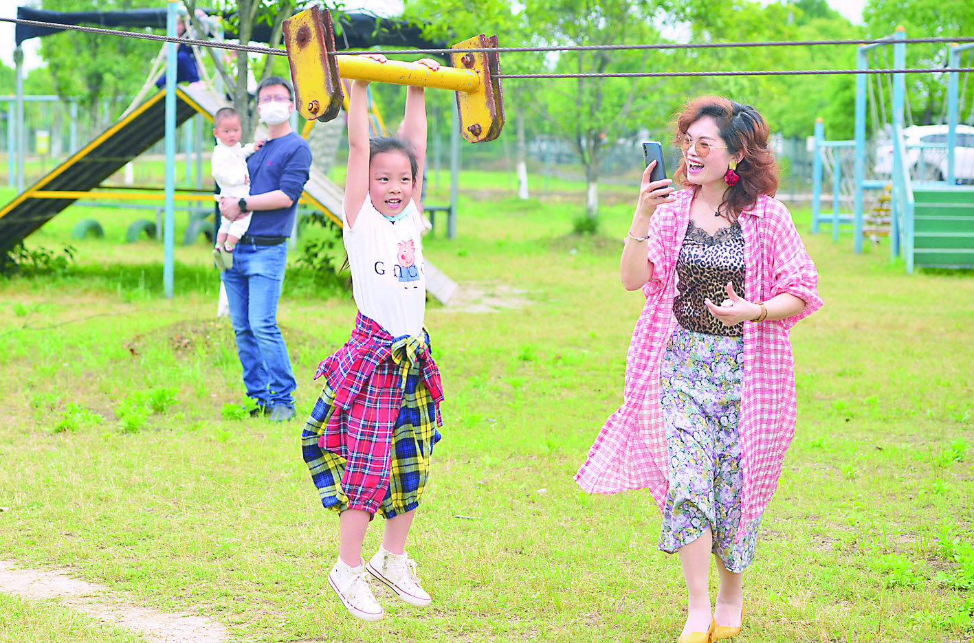 除了近郊游,在市区,很多市民来到神农城、万丰湖、湘江风光带等地游玩。放风筝、骑单车、玩游乐设施,孩子们尽情挥洒汗水。走在林间小道上,和家人一起搭帐篷露营,分享美好时光。不必远行,家门口也能成为游玩的好景点。