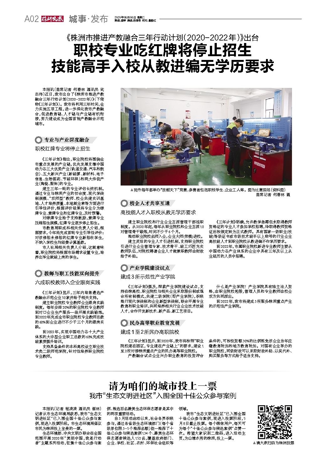 本报讯(记者 杨凌凌 通讯员 崔林)记者从市生态环境局获悉,我市“生态文明进社区”已入围全国十佳公众参与案例,现进入投票阶段。市生态环境局倡议市民为株洲投上宝贵的一票。