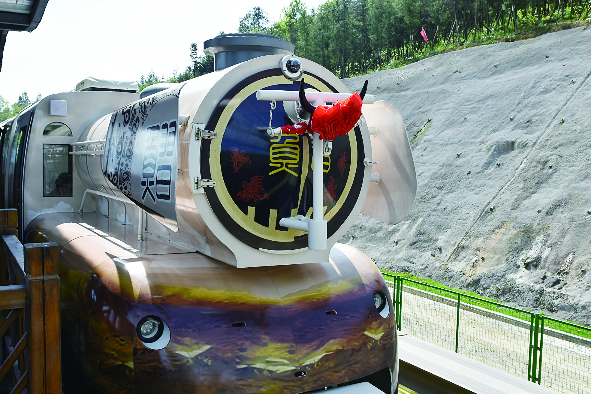 旅游观光小火车设计时速30公里,包括司机在内,可搭载90名乘客。以纯电力驱动,用蒸汽模仿蒸汽机车烟雾排放,避免传统复古小火车烧煤烧油给沿途带来的污染,同时兼具有爬坡能力强、转弯半径小等优点。