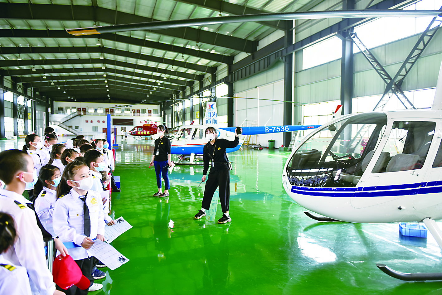 5月4日,株洲日报社校园记者航空基地行活动举行。59名校园记者齐聚翔为通航基地,了解民用航空知识,与多种直升机和航空飞行器亲密接触。