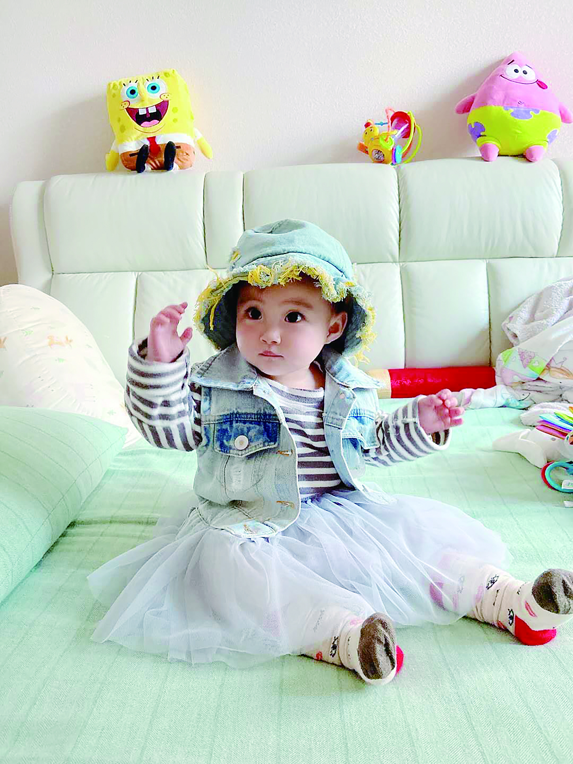 小孙女快十个月了,挺活泼可爱。宝宝坐在床上,像个洋娃娃,一坐上小车就高兴得手舞足蹈,以为会带她出去玩了。