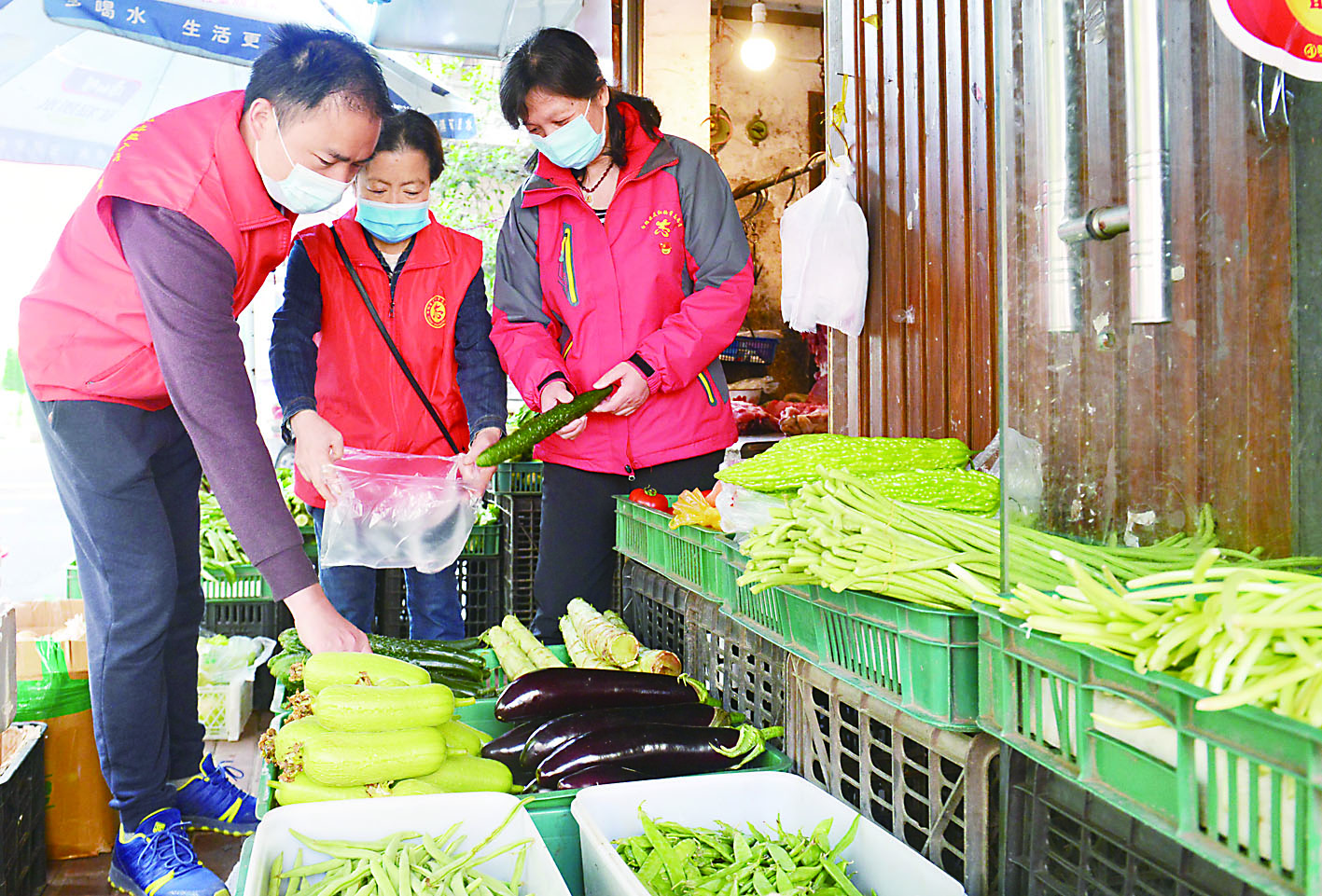 ▲志愿者在为行动不便的居民代购蔬菜
