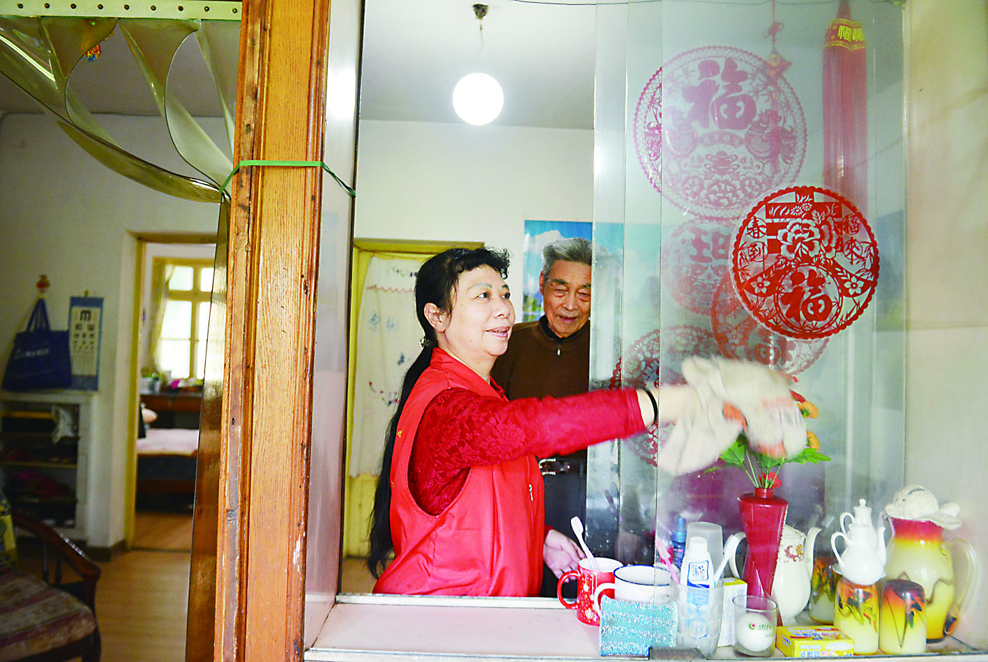 ▲志愿者在刘金斗老人家里打扫卫生