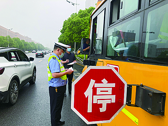 昨日,我市幼儿园分批错峰开园,为严防涉校道路交通事故的发生,天元交警大队联合区教育局、区校车办对部分幼儿园的校车实施突击检查。民警介绍,被检查的校车手续资质齐全,驾驶员、随车幼师和儿童都戴了口罩,校车上的消毒措施和体温监测记录都比较到位。不过,部分校车停车时未及时打开停车指示牌,民警对相关司机进行了批评教育。