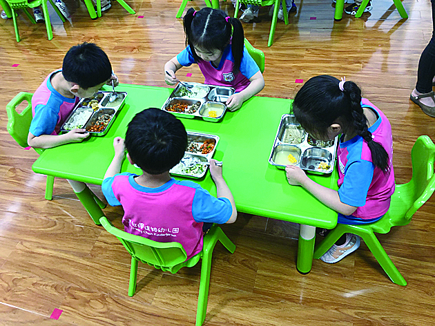 ▲洗好小手我们开始吃午餐啦!这么多好吃的美食,我真开心,今天,我要吃3碗饭