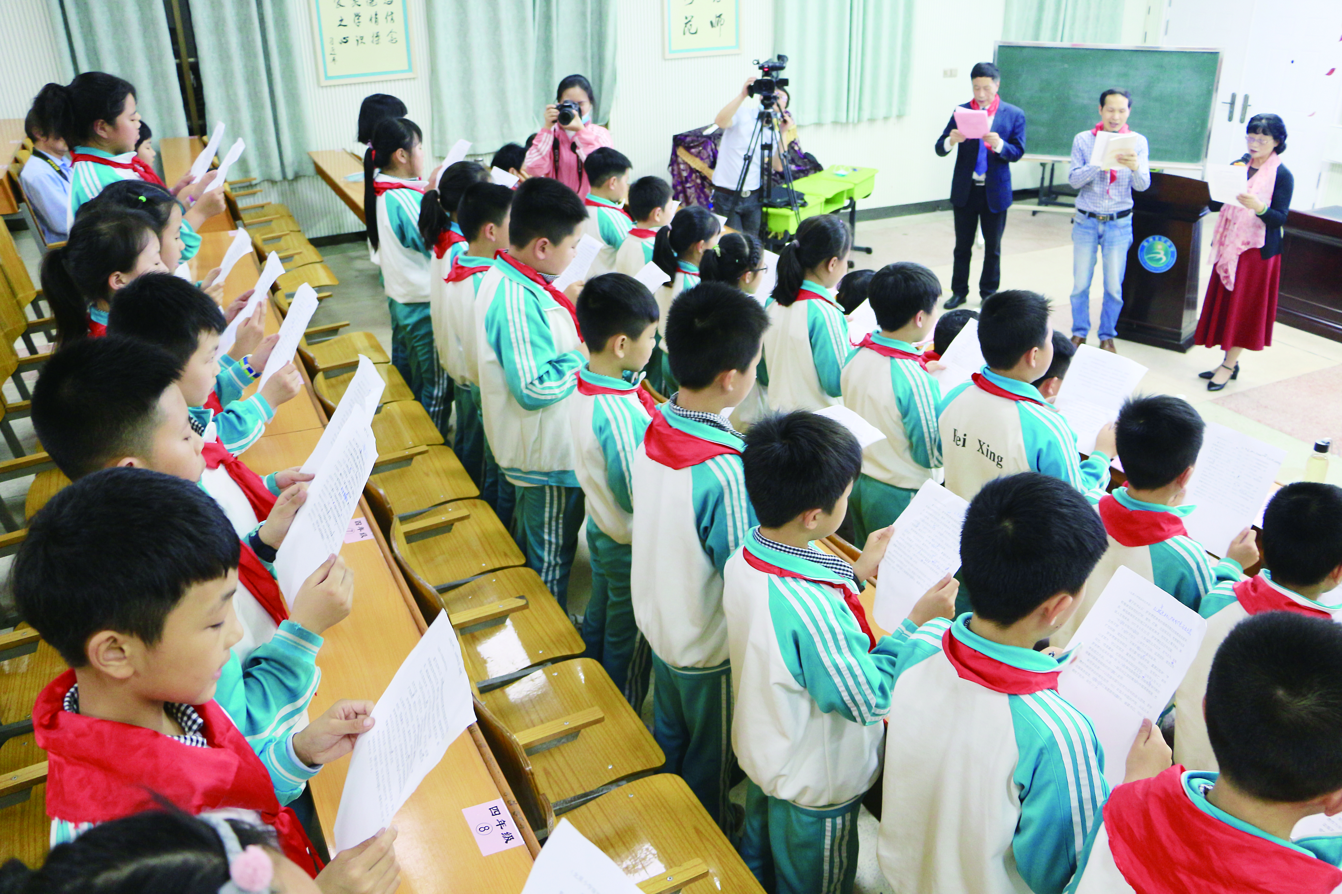 红色课堂进校园 5月9日下午,“红色课堂进校园,培养小小红色讲解员”首场活动在北星小学举行。 活动现场,我市党史专家王启才等人讲述了数位株洲革命英烈故事,知名作家邰勇夫主讲红色故事《陈觉、赵云霄烈士遗书》,北星小学校长郑旺军、石峰区关工委五老志愿者阳郁娥等率学生接力朗读《罗学瓒:为救国救民而读书》,北星小学学生刘芮宁讲述了石峰区“最美护士”何遥的故事。 活动由市委党史研究室、石峰区委文明办、关工委、教育局主办,北星小学承办。活动旨在充分利用株洲丰富的红色文化资源,让红色故事走进校园、让红色基因代代相传,引导中小学生坚定理想信念、树立远大志向,做红色基因的传承者。 (全媒体见习记者 周兴海 摄影报道)