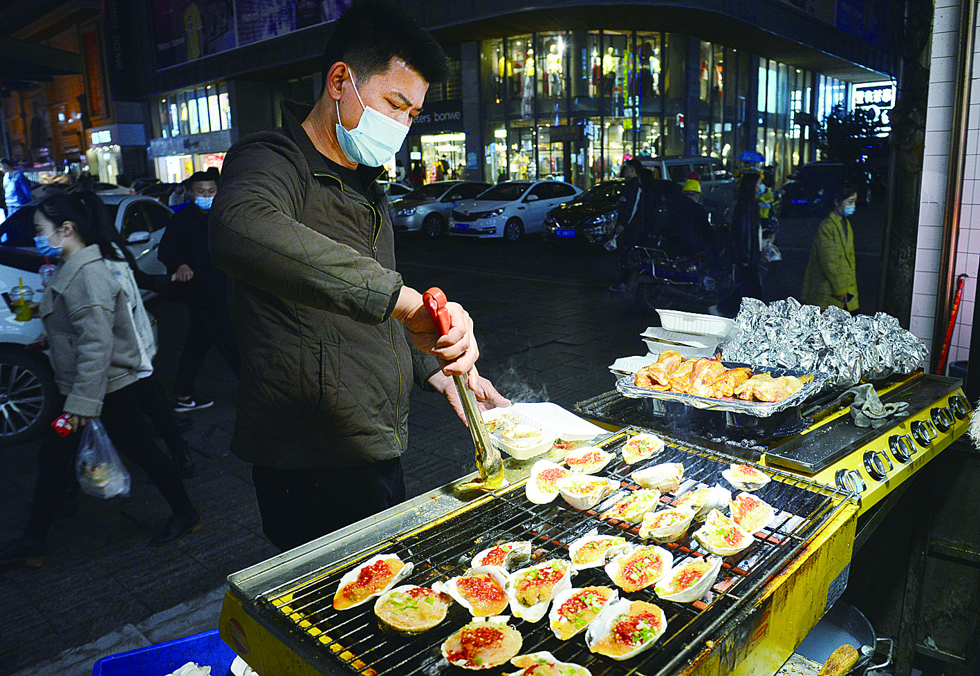 随着疫情得到有效控制,夜市上人声鼎沸,此起彼伏的吆喝声与“滋滋”的烧烤声交融一体,人们找回了熟悉的城市烟火气息,逐渐恢复多彩生活。