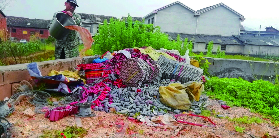 ▲执法人员对违禁烟花产品实施销毁 通讯员供图
