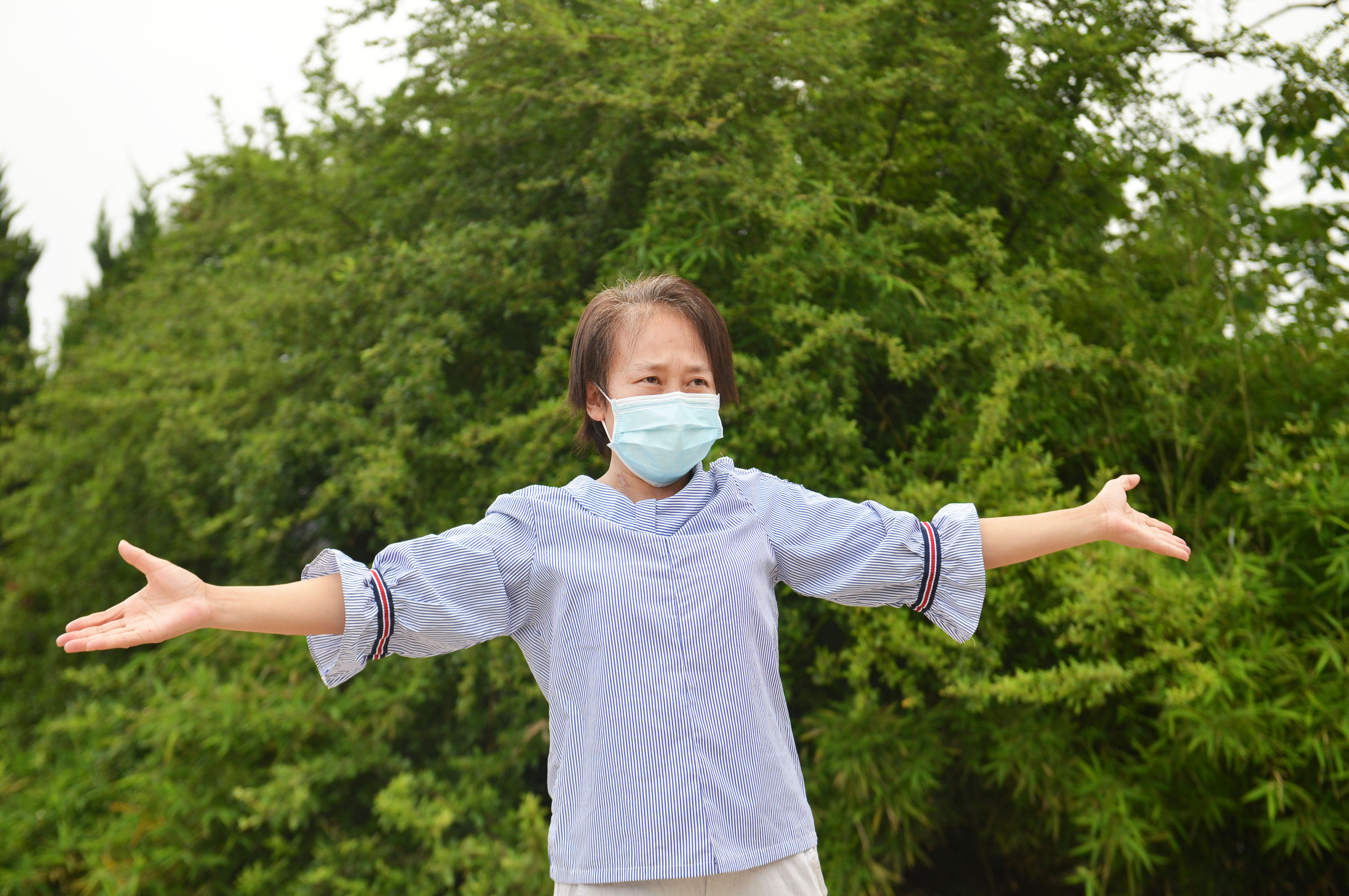 “如果没有国家不遗余力地救治,没有医生护士拼尽全力,我见不到今天的太阳。”昨日下午4点,在荷塘区石子湖公园,42岁的“玫瑰阿姨”正在做呼吸操。