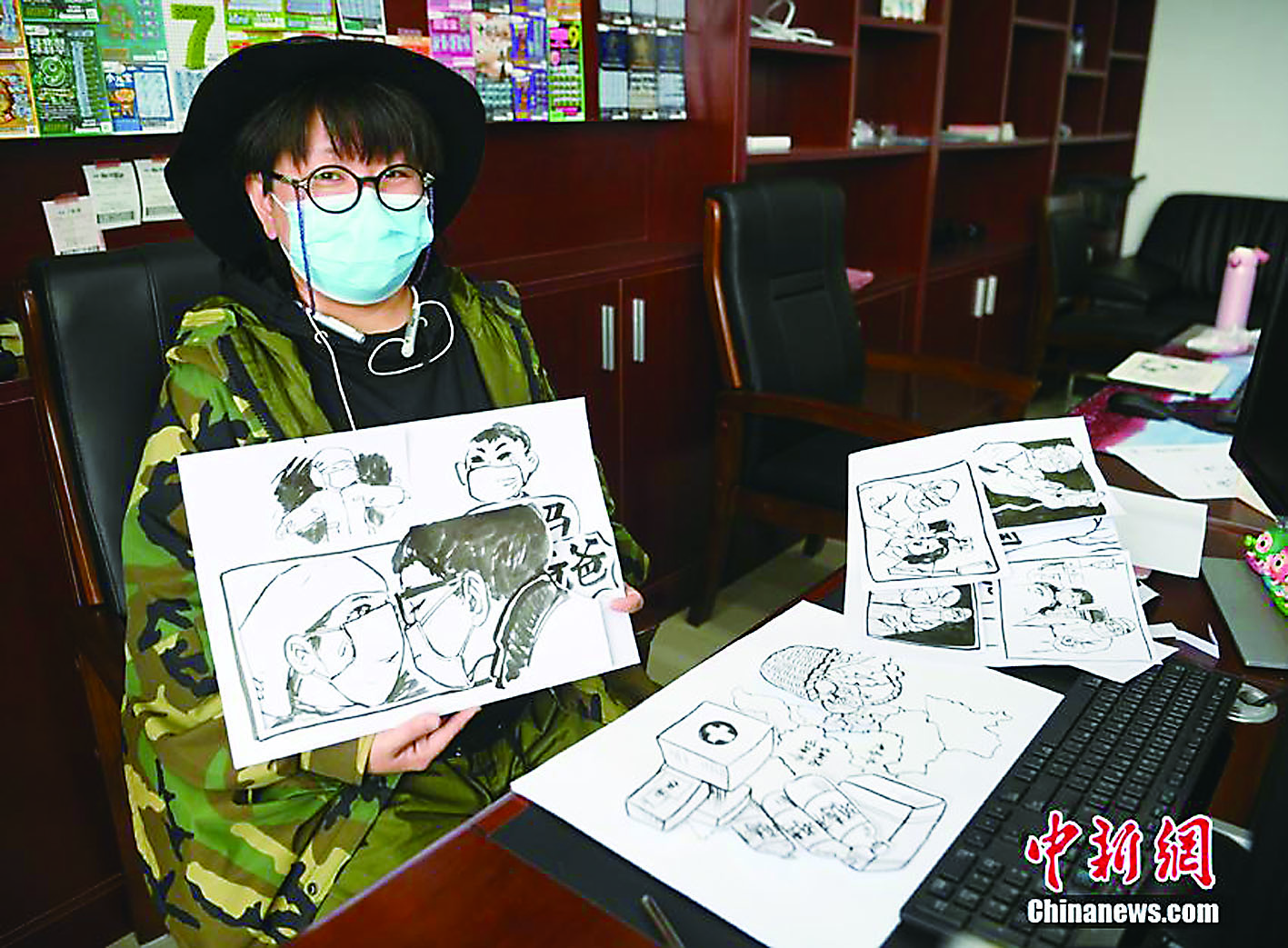 5月14日,吉林长春,李晓羽展示翻页画。李晓羽是吉林省体育彩票管理中心的员工,绘画是她最大的爱好,她被奋战在抗疫一线的医护人员所感动,通过绘制翻页画的形式向医护人员致敬。 (据中新社)