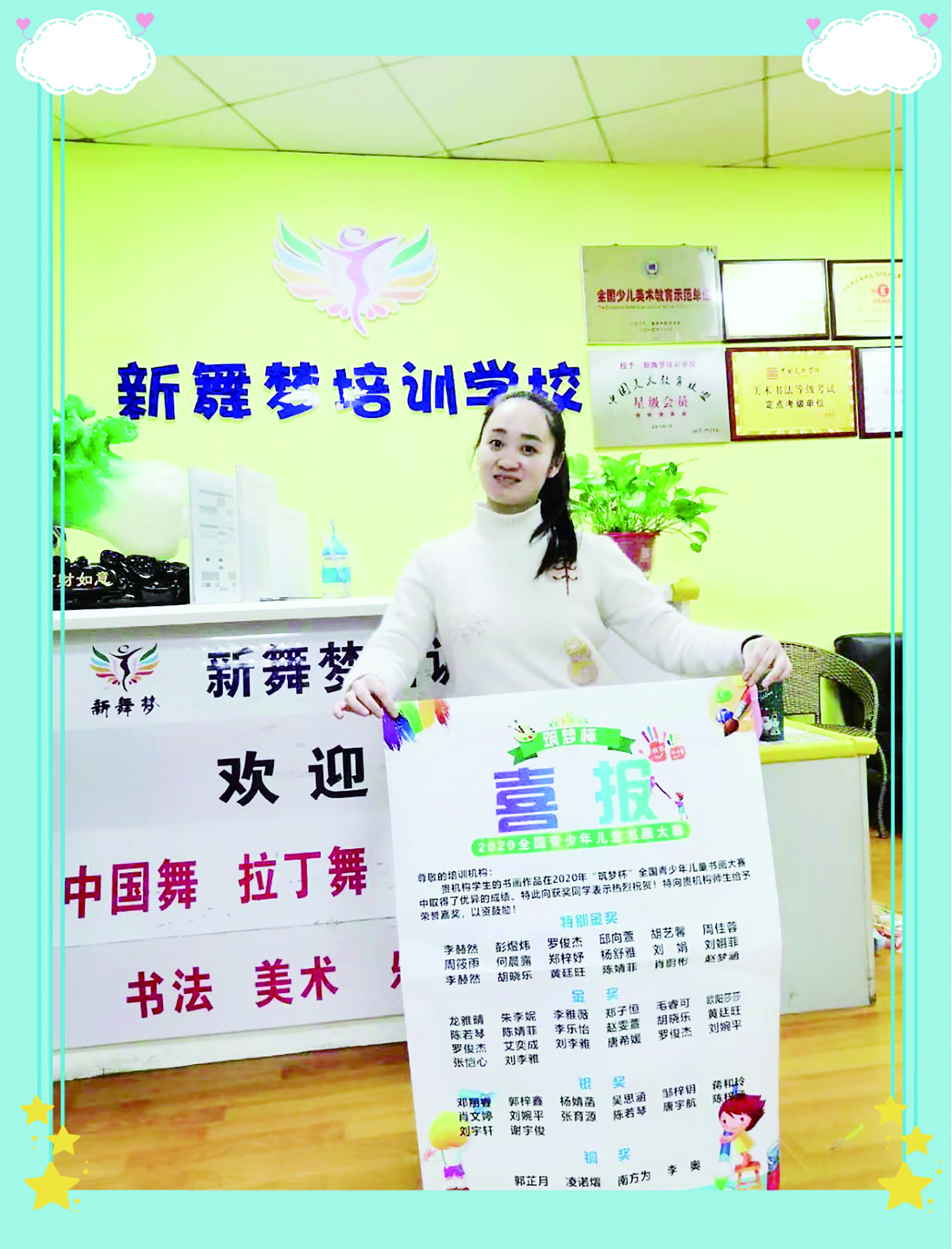 新舞梦培训学校是湖南经视“向上吧少年”才艺大赛优秀合作机构、全国美术书法考级定点单位,开设有中国舞、拉丁舞、街舞、美术、书法、主持人等课程,各类项目考级通过率一直保持100%。