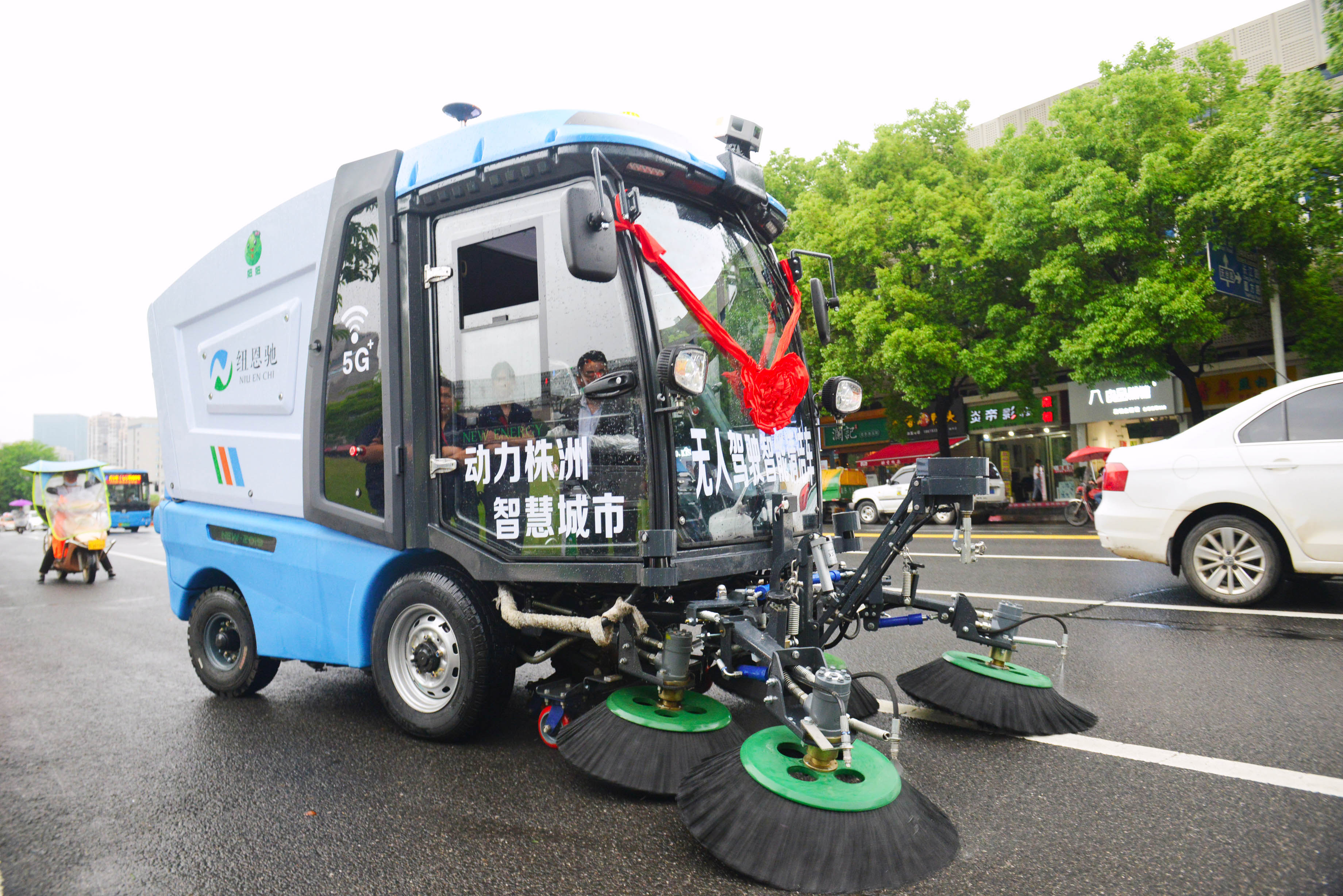 本报讯(记者 伍靖雯 通讯员 黄天鹤)这两天你是否注意到,天台路上多了两辆“机器人”保洁车——无人驾驶的车辆所经之处,地上的垃圾被瞬间“吃掉”。5月15日起,两台由湖南纽恩驰新能源车辆有限公司开发的新能源无人驾驶智能清洁车开启其在城市开放道路的示范运营。 湖南纽恩驰新能源车辆有限公司总工程师阳衡介绍,该清洁车基于激光雷达、超声波雷达等多传感器融合的感知系统和嵌入式车规级处理器,遇障碍物后能自动停车或绕行,同时它还接入了远程驾驶系统,可实现一键启动与随身遥控,并通过手机APP和智能后台进行实时监控,让后期运行管理高效便捷。 该智能清洁车采用纯电动动力,充一次电可使用8小时,“能有效减少废气排放,降低噪音。”阳衡表示。 天元区环境卫生服务中心负责人介绍,两台车辆即将投入到天台路环卫清扫保洁工作中,补充人员清扫空隙时段的同时,提升城市清洁效率。 据悉,此次新能源无人驾驶智能清洁车的启用,是5G、新能源、人工智能等国家“新基建”战略产业成果首次在我市真实场景的集中运用,也是天元区城市管理工作迈向科学化、精细化、智能化、智慧化的大胆探索与实践。 ▲5月15日,神农城,新能源无人驾驶智能清洁车开始上路作业 记者 谢慧 摄