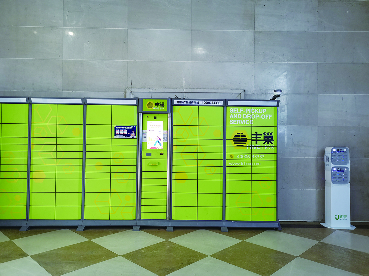 前日上午,记者来到汉华国际一楼看到,A座和B座分别有一个消防通道和一个通往商场的通道,消防通道通往大厦的楼梯。在消防通道门口,一家名叫“极简民宿”的宾馆设置了前台,还有人员在前台值守。记者目测,前台的宽度已经占到消防通道的一半。而消防通道和通往商场的通道只隔了一堵墙,中间开了一道门,可是,在通往商场的通道,一组丰巢快递柜贴着墙壁设置,将这个侧门完全封住了。