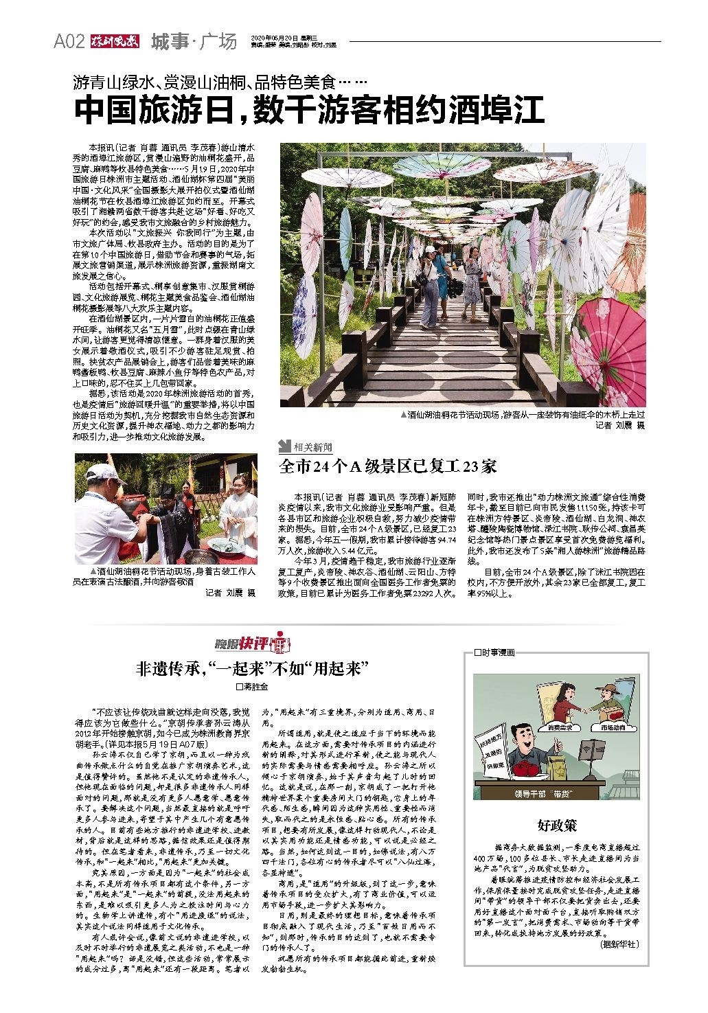 目前,全市24个A级景区,除了洣江书院因在校内,不方便开放外,其余23家已全部复工,复工率95%以上。