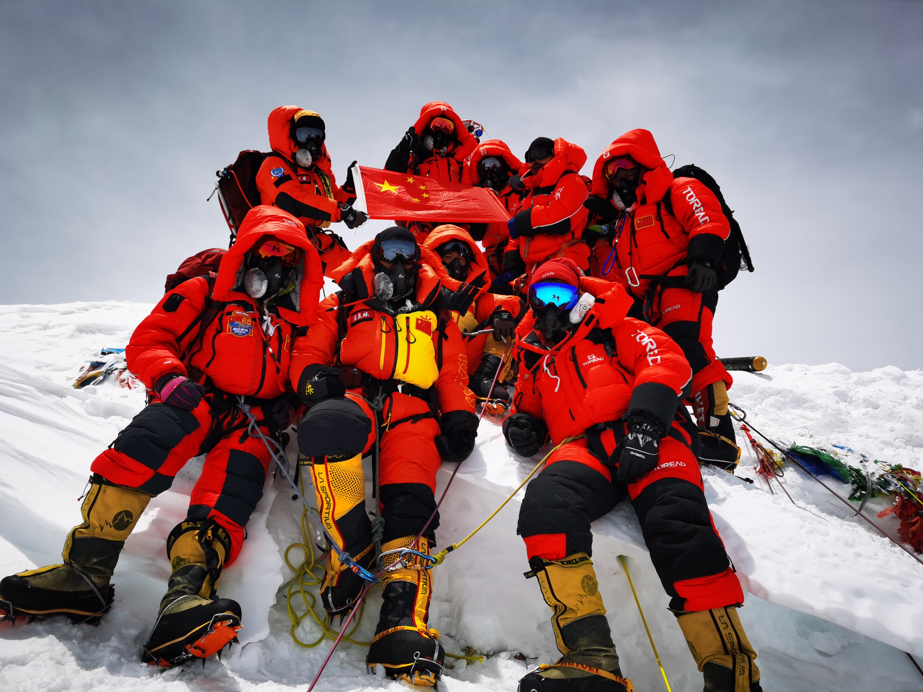 ▲5月27日,2020珠峰高程测量登山队在珠穆朗玛峰顶合影留念