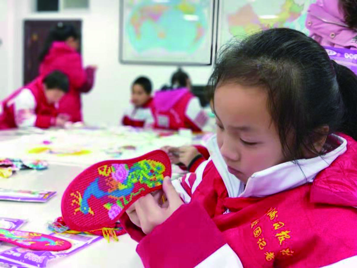 ▲再踏新征程,市外国语荷塘学校校园记者手绣鞋垫寓意深刻 王卫平 供图
