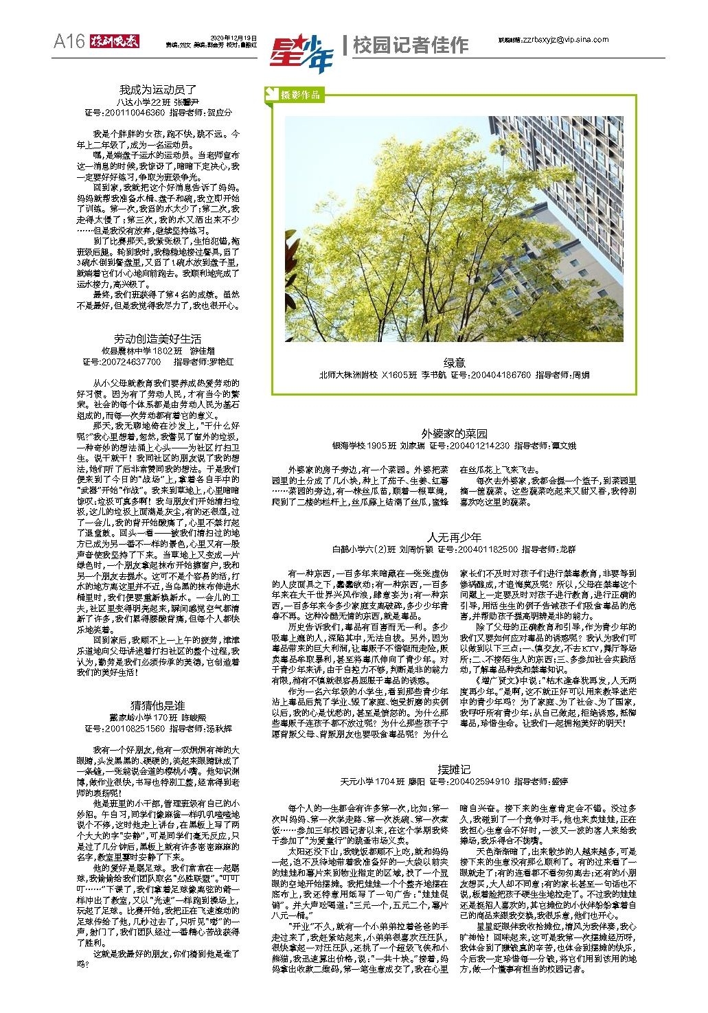 他是班里的小干部,管理班级有自己的小妙招。午自习,同学们像麻雀一样叽叽喳喳地说个不停,这时他走上讲台,在黑板上写了两个大大的字“安静”,可是同学们毫无反应,只是过了几分钟后,黑板上就有许多密密麻麻的名字,教室里霎时安静了下来。