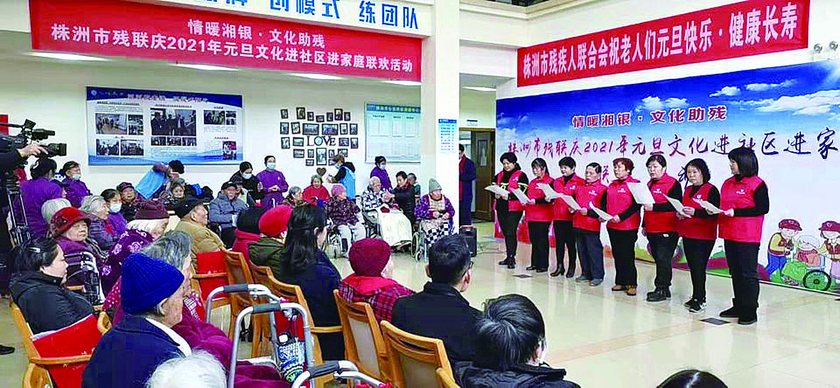 12月18日上午,由株洲市残联主办的“情暖湘银·文化助残——株洲市残联庆2021年元旦文化进社区进家庭联欢活动”在湘银社区心怡养老院举行,市残联党组成员、副理事长、党总支书记黄晓燕和党员志愿者、省直中医院医护人员、湘银社区、株洲晚报志愿者联合会、株洲温心公益协会、神农琴社艺术团负责人和志愿者以及社会各界人士160多人参加了慰问联欢活动。六十位八十多岁的爷爷奶奶和社区十个残疾朋友接受了义诊、义剪、观看了文艺演出,院内喜气洋洋、温暖祥和,充满了浓浓的节日气氛。(通讯员 潇雅)