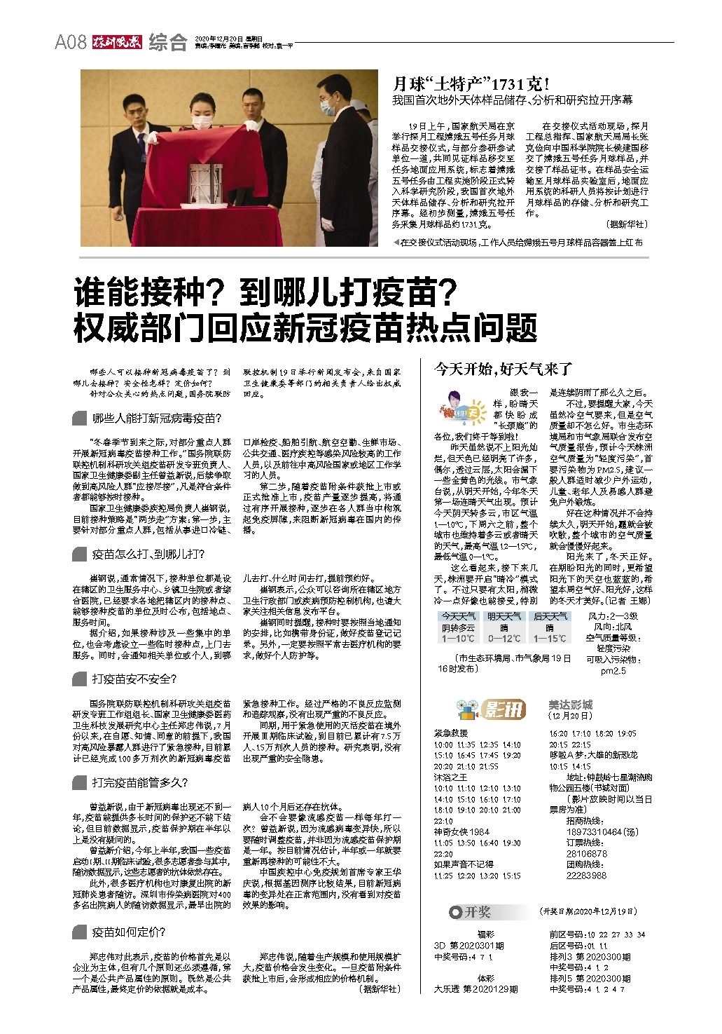 (开奖日期:2020年12月19日)