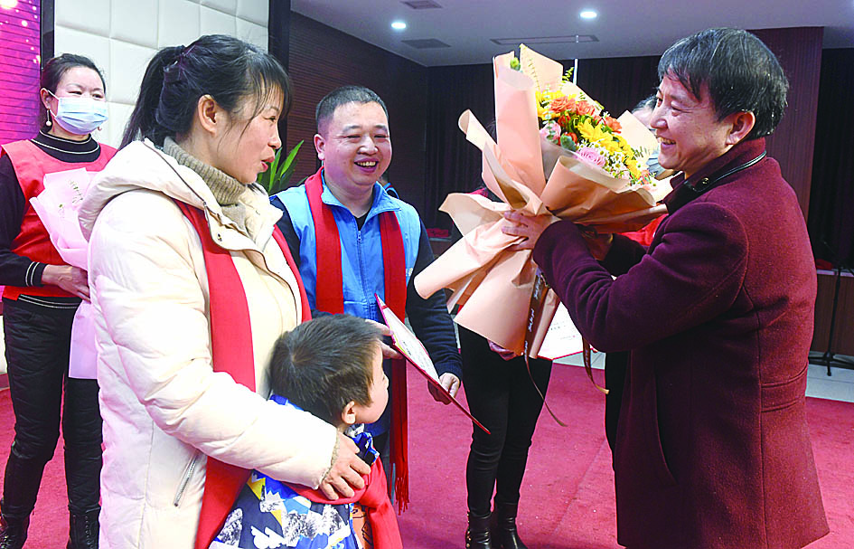 ▲株洲日报社党组成员、副总编辑,株洲晚报执行总编辑谭秋茂为优秀家庭颁奖