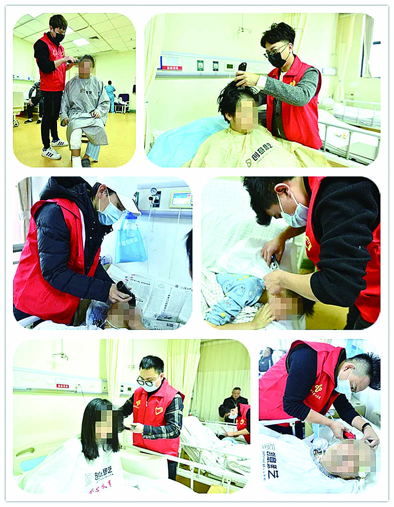 一年又一年,无论严寒还是酷暑,创意思艺美发造型机构的发型师们每个月都会来到病房,共为1600余名行动不便的患者提供免费剪发服务。
