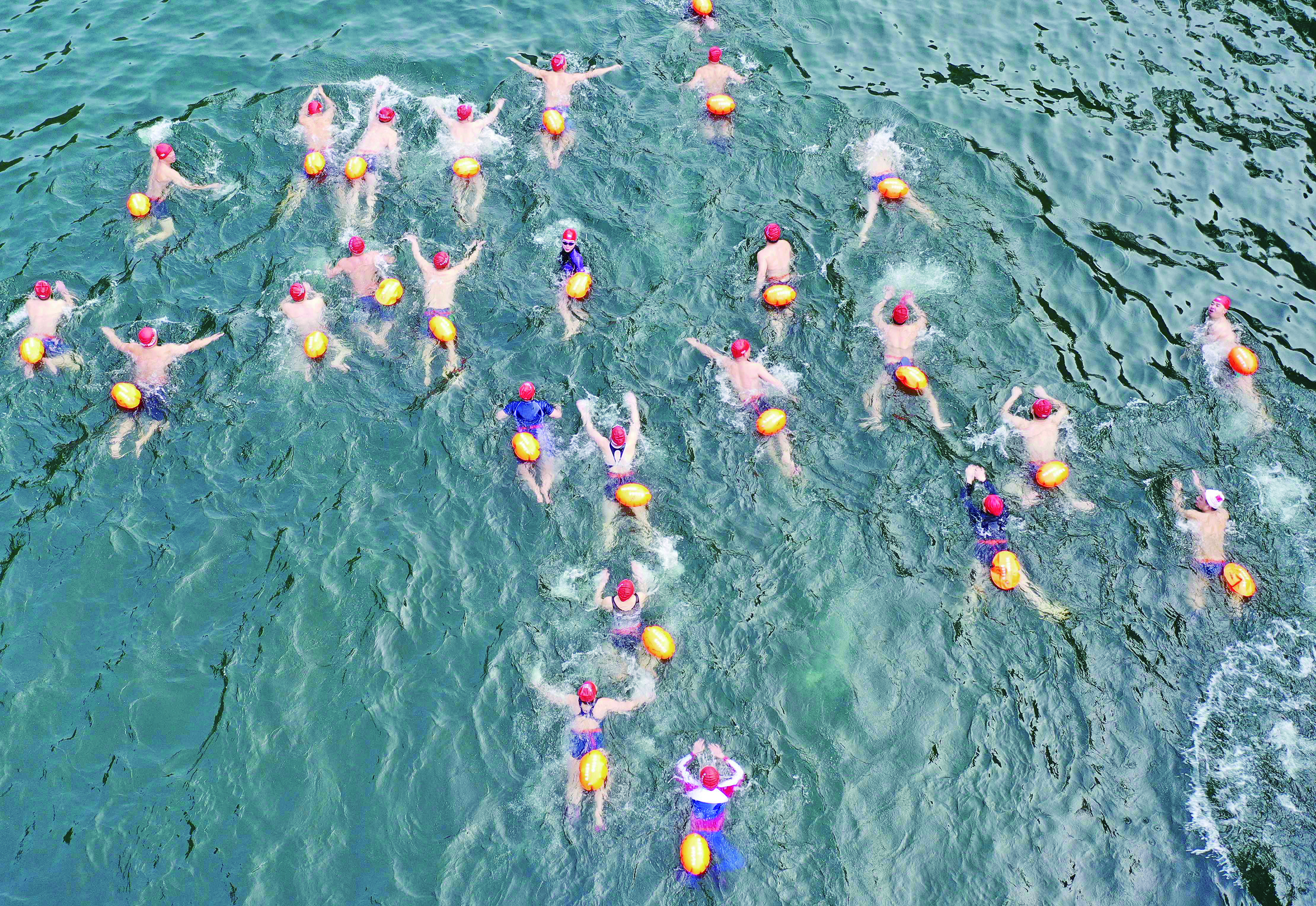 ▲12月20日,冬泳爱好者在张家界宝峰湖景区公开水域进行冬泳比赛