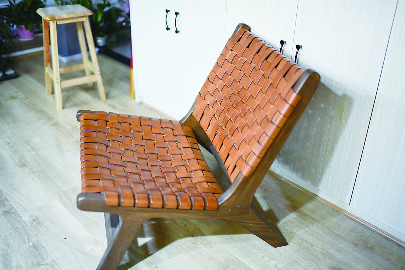 ▼周至为自己做的一把皮椅,这是他的得意之作