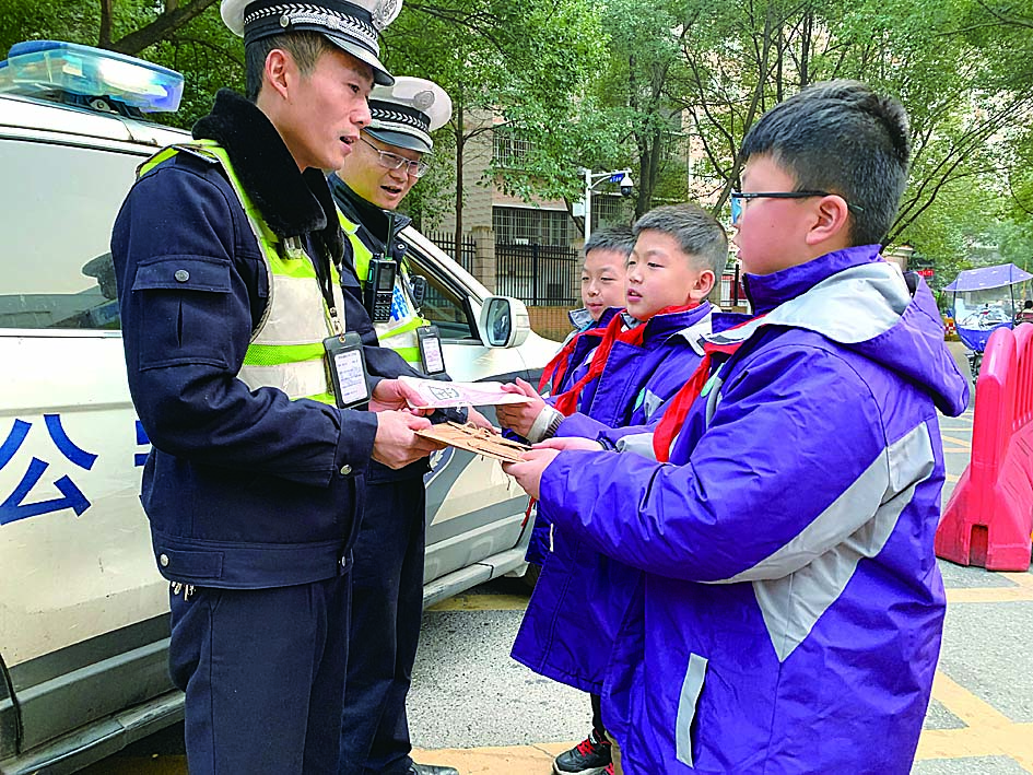 ▲昨天下午,白鹤小学学生慰问交警叔叔 通讯员供图
