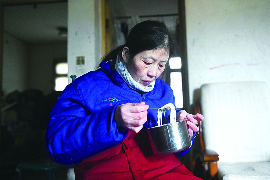 ◀简单的面条便是刘军辉的午餐