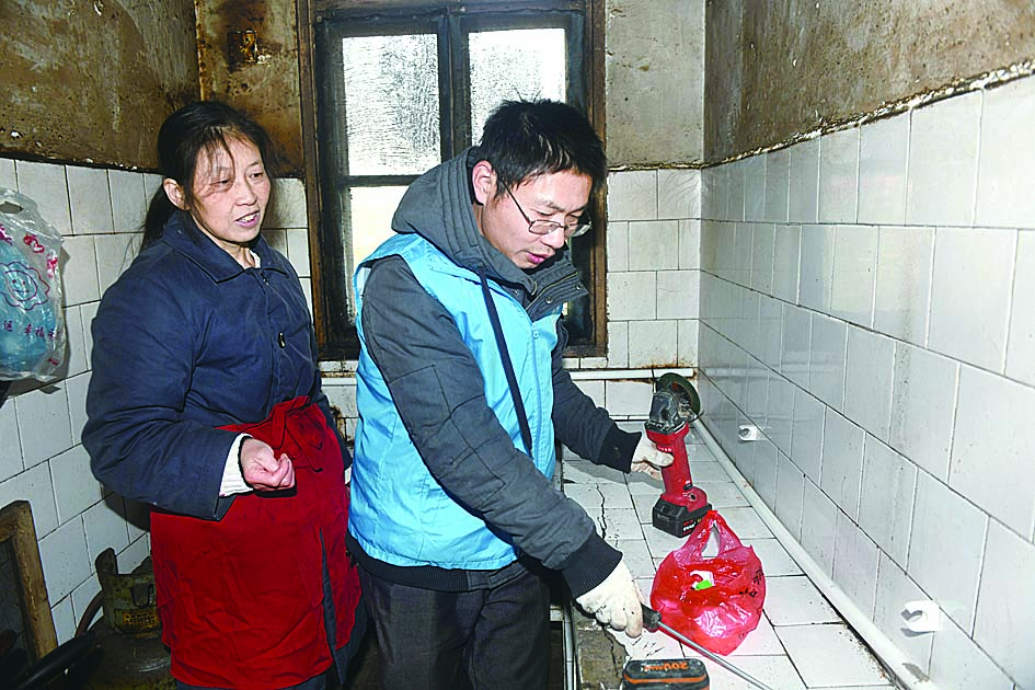 ▲晚报志愿者李国科帮刘军辉家更换水管