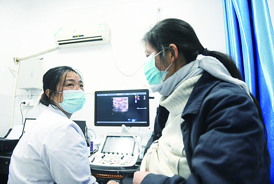 ▲市三医院的医务人员为刘军辉检查身体