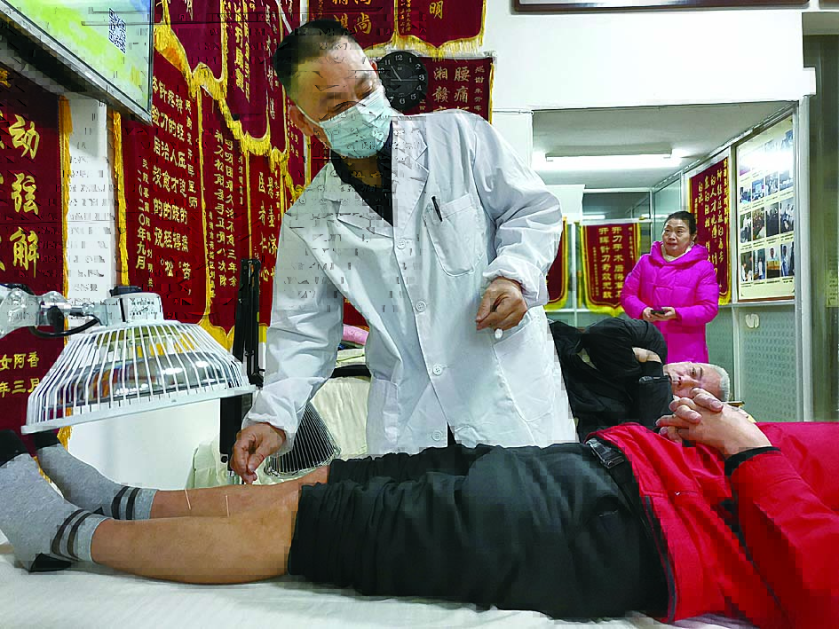 ▲朱开晖为患者进行小针刀治疗 记者 姚时美 摄