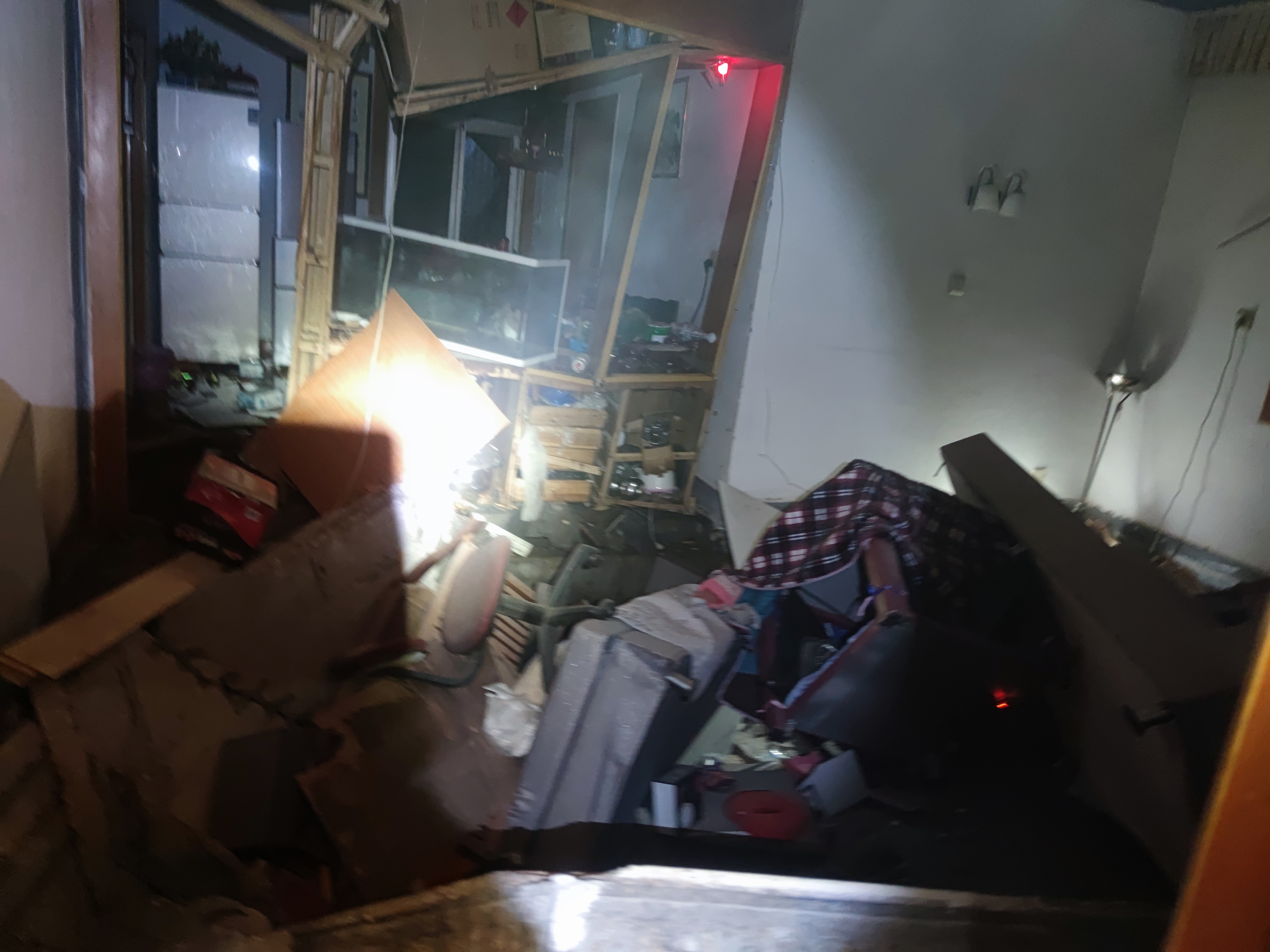 “由于天然气爆燃,7栋那户居民家一片狼藉,铝合金门窗和一些家具被震落,好在此次事故没有造成人员伤亡。”消防员说。