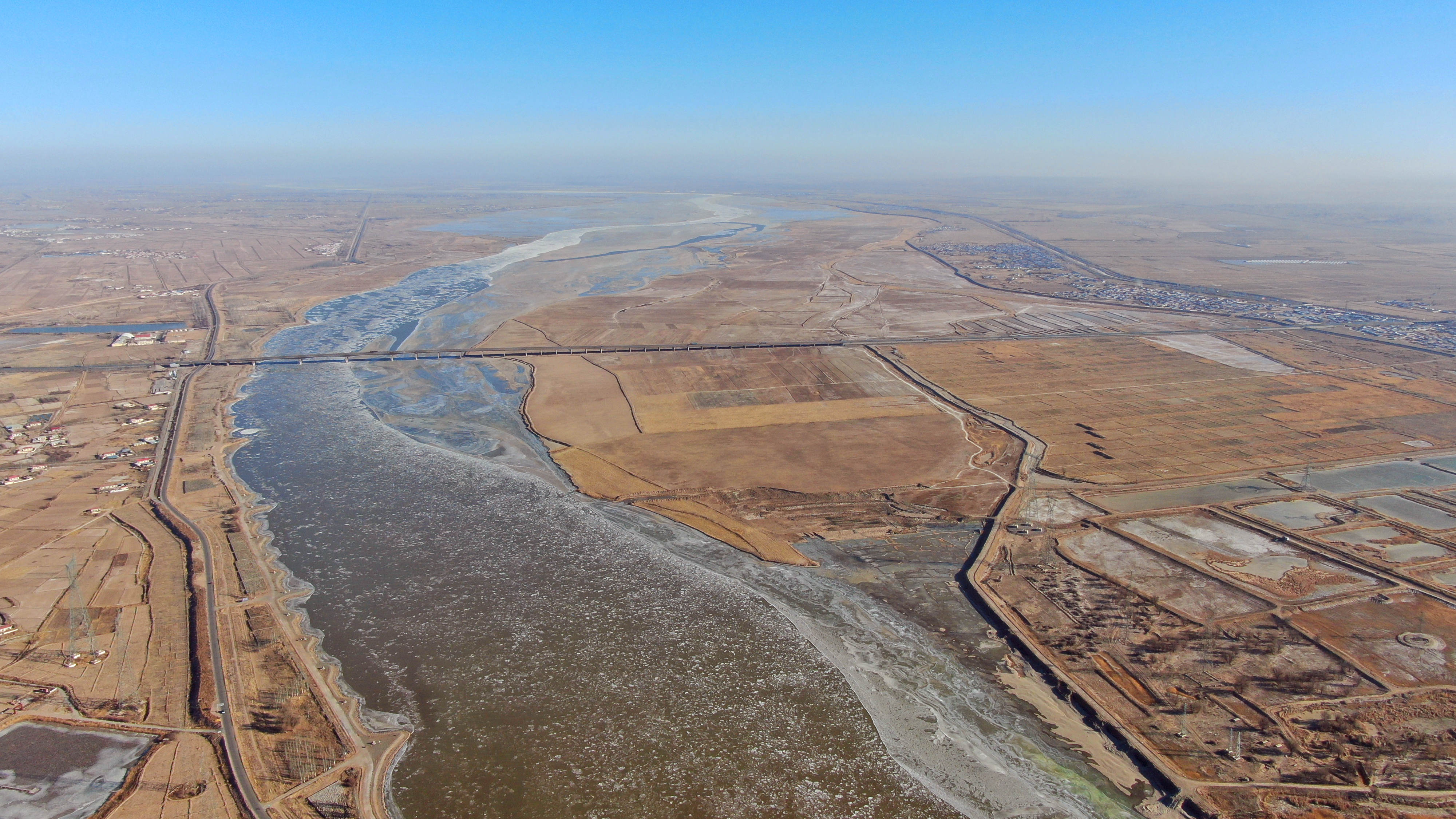 千里冰封!黄河封冻长度超500公里 随着最寒冷的隆冬季节到来,黄河干流上、中、下游河段均已出现流凌,其中内蒙古河段封冻超过500公里,呈现千里冰封景象。 (据新华社)