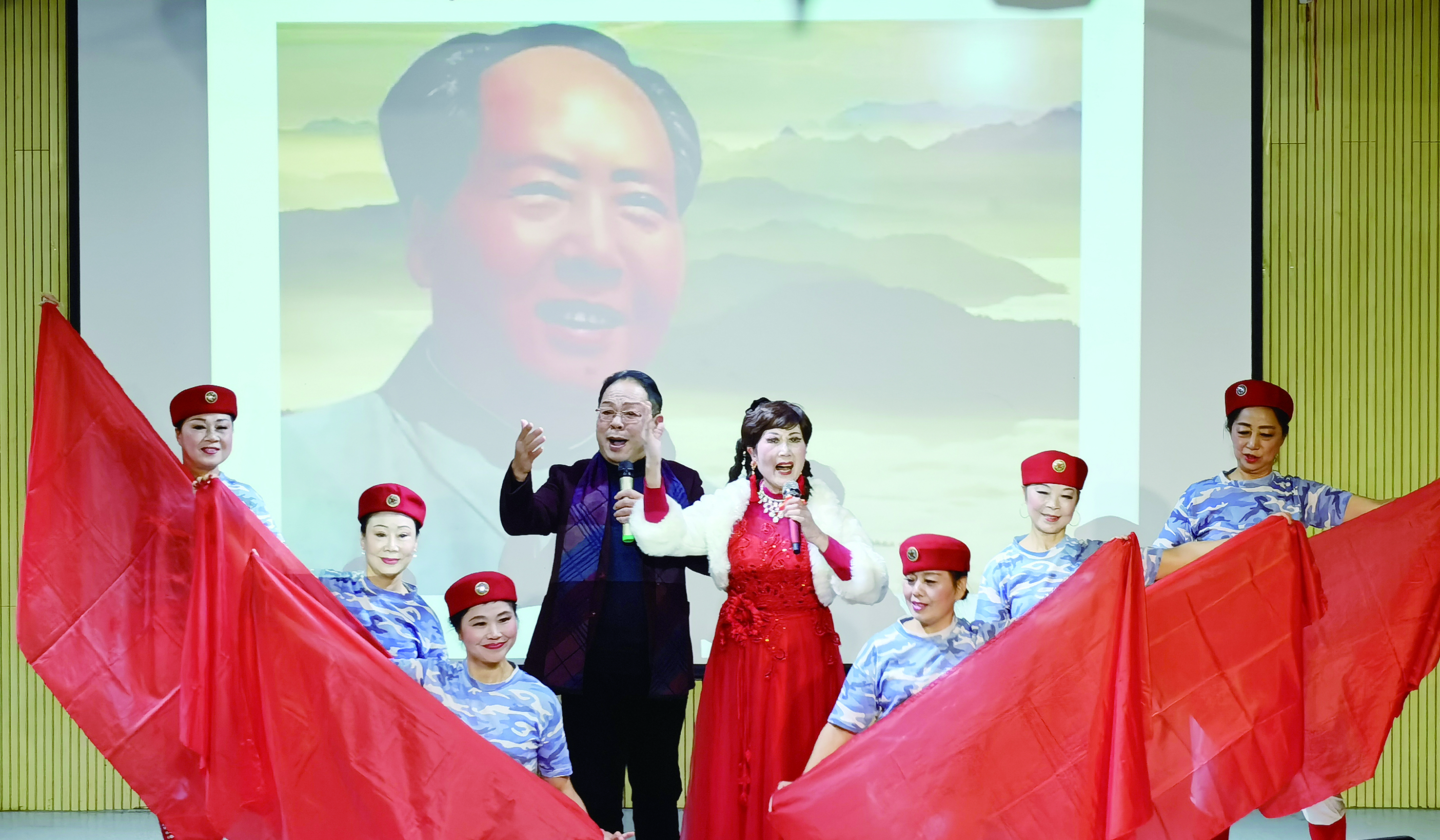 12月24日,株洲晚报老年大学在嵩山路街道文体中心举行纪念毛泽东同志诞辰127周年文艺汇演,来自学校和社会各艺术团体的300多人参加本次活动。文艺汇演包含歌舞、朗诵等多类节目。活动现场,晚报老年大学剪纸班、书法班、国画班的学员还展示了自己所创作的毛泽东题材艺术作品。 (记者 王烽 摄影报道)